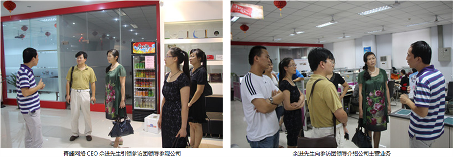 青峰網(wǎng)絡(luò)科技CEO余進(jìn)先生引領(lǐng)參訪團(tuán)領(lǐng)導(dǎo)參觀公司辦公區(qū),在參訪過(guò)程中余進(jìn)先生與參訪團(tuán)領(lǐng)導(dǎo)進(jìn)行了親切而友好的交流,并向參訪團(tuán)領(lǐng)導(dǎo)介紹了公司的主營(yíng)業(yè)務(wù)、企業(yè)文化,當(dāng)?shù)弥喾寰W(wǎng)絡(luò)從新鄉(xiāng)市一家名不見(jiàn)經(jīng)傳的小網(wǎng)絡(luò)公司,一路過(guò)關(guān)斬將,經(jīng)過(guò)十一年的持續(xù)發(fā)展,最終成就新鄉(xiāng)市信息產(chǎn)業(yè)界大企業(yè),業(yè)務(wù)覆蓋新鄉(xiāng)、焦作、安陽(yáng)、洛陽(yáng)、浙江金華五市時(shí),參訪團(tuán)一行領(lǐng)導(dǎo)無(wú)不由衷的發(fā)出了贊嘆。