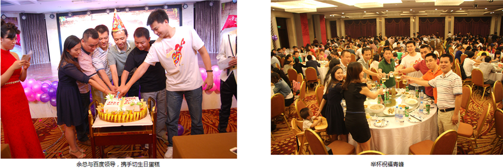 11年的成長離不開青峰所有家人的共同努力和奮斗,更離不開百度對我們的關心和支持。在青峰周年慶典之際,百度西北大區(qū)總監(jiān)陳禎鋒先生、百度渠道部山東大區(qū)高級經理蘇實先生、百度鄭州渠道經理張弦先生、百度渠道經理宋峰輝先生、百度服務管理部區(qū)域經理何蓓女士,蒞臨活動現場,為青峰獻上真誠的祝福,為青峰的發(fā)展指明新的航向。