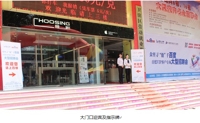 2013年4月26日,眾里尋“他”千百度—百度VIP客戶專場大型招聘會,在新鄉(xiāng)人力資源市場隆重舉辦。本次活動僅針對百度的優(yōu)質(zhì)客戶,為我們的客戶解決人才招聘難題,為社會上的優(yōu)秀人才提供發(fā)揮才能的平臺。今天,我們也充當(dāng)了一次“度娘”,為優(yōu)質(zhì)企業(yè)和優(yōu)秀人才搭建橋梁,結(jié)下美滿的“姻緣”。
