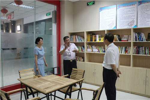 付主席向市工會(huì)領(lǐng)導(dǎo)介紹圖書(shū)園地