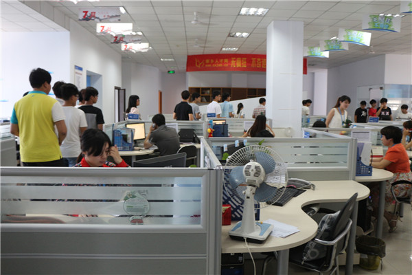 培訓(xùn)結(jié)束后,在行政部經(jīng)理付士奇的帶領(lǐng)下,院系學(xué)生走進青峰網(wǎng)絡(luò)進行實地的參觀,使大家切身體會進入職場的工作環(huán)境和狀態(tài)。